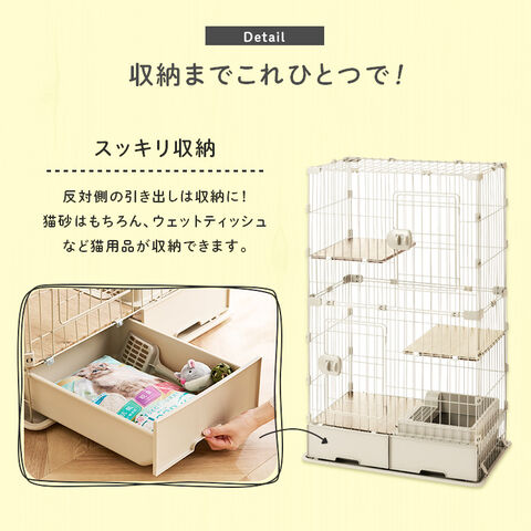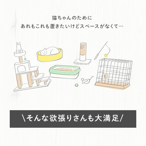 ケージの下部にトイレ・収納付きで、狭いスペースにも置きやすい省スペース設計です。