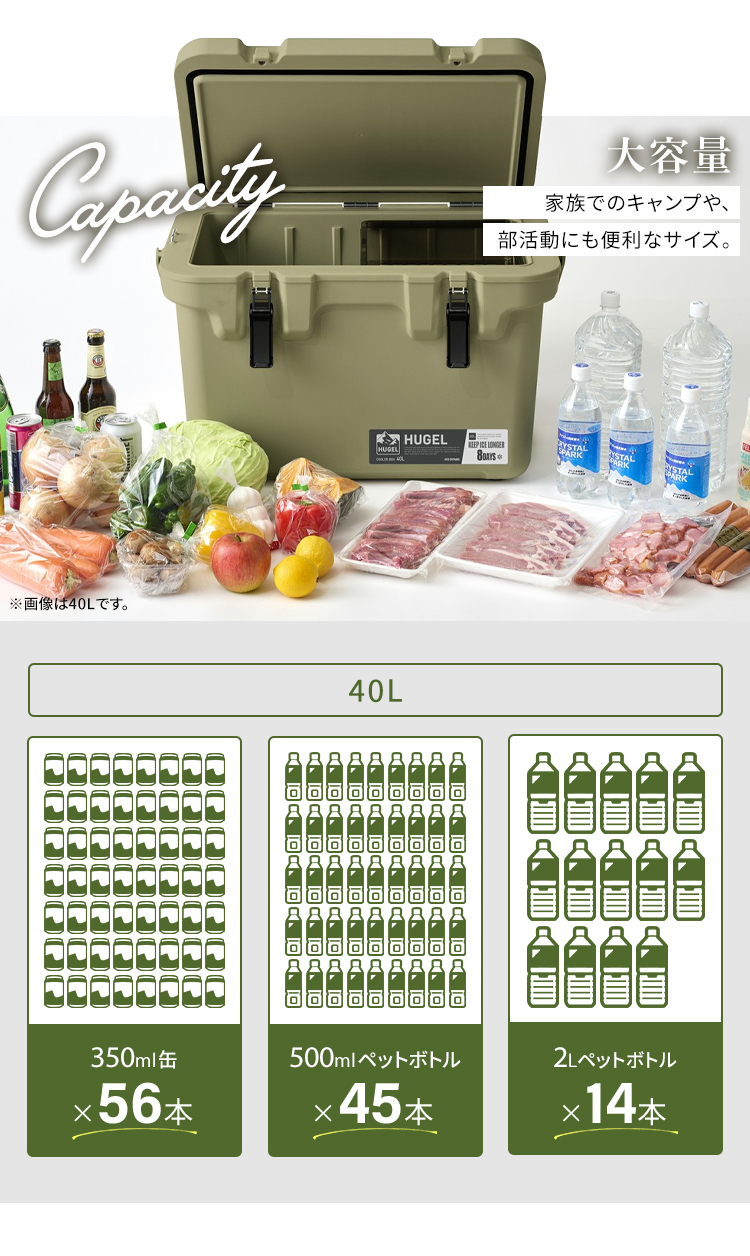 HUGEL クーラーボックス アイリスオーヤマ ハードクーラーボックス クーラーBOX 保冷力 ハードクーラー 高保冷 断熱 キャンプ アウトドア スポーツ 防災 節電 BBQ 海釣り 釣り 40L TC-40R カーキ