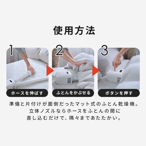 アイリスオーヤマこだわりの立体ノズルが、ふとんの間に空間を作り、隅々まで風を届けます。