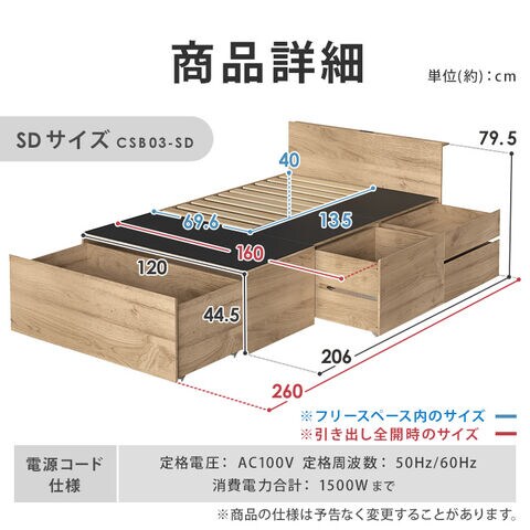 超収納ベッド宮有り セミダブル CSB02-SD ナチュラル