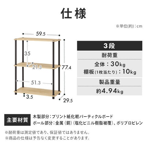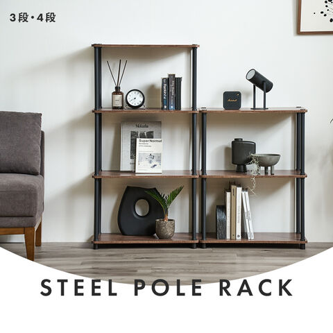 組立簡単スチールポールラック 3段ラック SPR-3R590 ウォールナット/ブラック