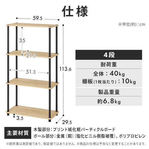 組立簡単スチールポールラック 4段ラック SPR-4R590 ナチュラル/ブラック