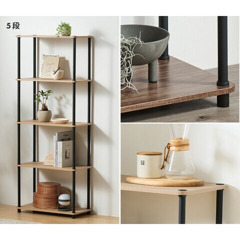 組立簡単スチールポールラック 5段ラック SPR-5R590 ウォールナット/ブラック