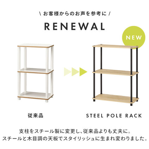 組立簡単スチールポールラック 3段ワイドラック SPR-3R900 ナチュラル/ブラック