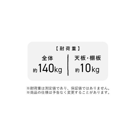 可動棚板1枚あたり:約10kg、固定棚板:約10kg、底板:約10kg、全体:約140kg