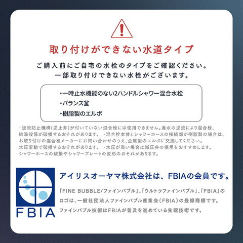 ※「FINE BUBBLE/ファインバブル」「ウルトラファインバブル」「FBIA」のロゴは、一般社団法人ファインバブル産業会(FBIA)の登録商標です。