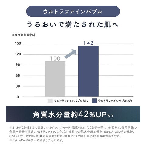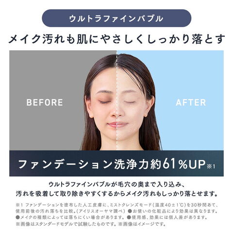 直径0.001mm未満(1μm)の超微細泡「ウルトラファインバブル」が毛穴の奥まで入り込み、汚れを吸着して取り除きやすくするのでメイク汚れもしっかり落とせます。