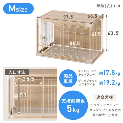 木製の屋根と背面板を付け、ワンちゃんがリラックスできる空間を目指したサークルです。