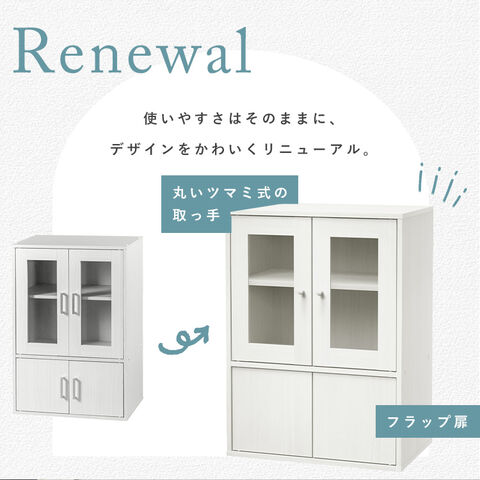 ガラス扉は中身が見え、食器棚やディスプレイ棚として使用できます。