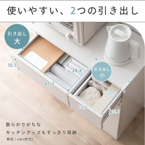 引き出し(小)はゴミ袋などの収納に、引き出し(大)はラップもらくらく入るサイズです。