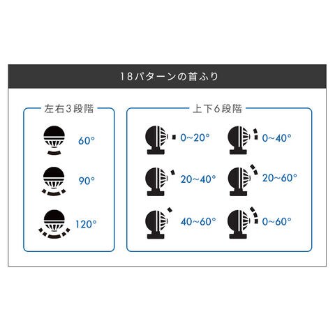 左右3パターン×上下6パターン=計18パターンの首ふり設定ができます。