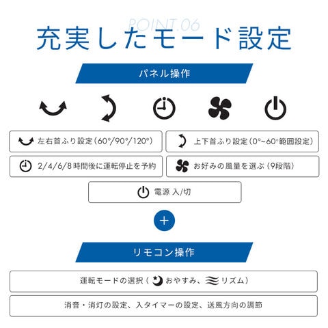 ランプ消灯モード・操作音の消音モード搭載で、睡眠時も快適に過ごせます。