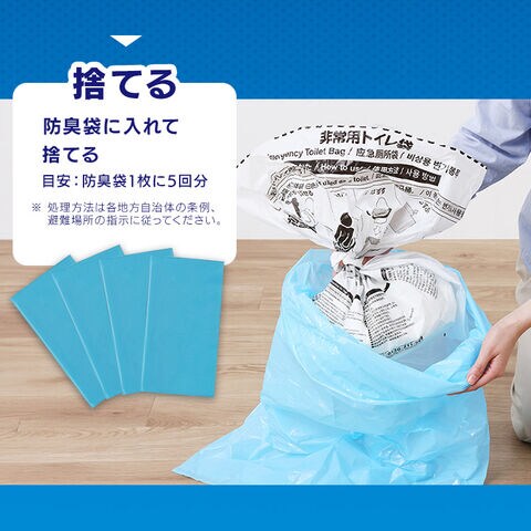 災害時や断水時などのトイレが使えない場面に加え、介護・アウトドアシーンでも役立つ非常用トイレ袋です。
