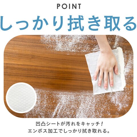 大判の厚手シートで破れにくく、エンボス加工を施しているので、汚れもふき取りやすくお掃除にも適しています。