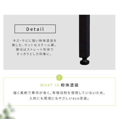 キズ・サビに強いマットなスチール脚。