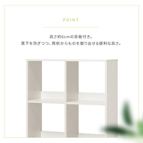 高さ約6cmの背板付き。落下を防ぎつつ、両側からものを取り出せる便利な高さ。