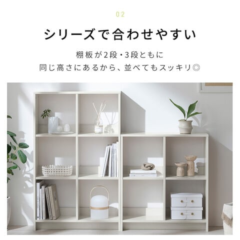 2段・3段と棚板が同じ高さにあるから、並べてもスッキリ◎