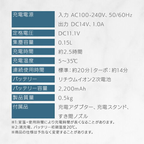 単品:充電アダプター、充電スタンド、すき間ノズル