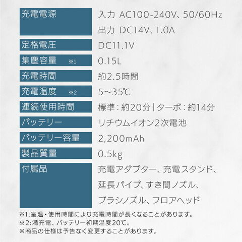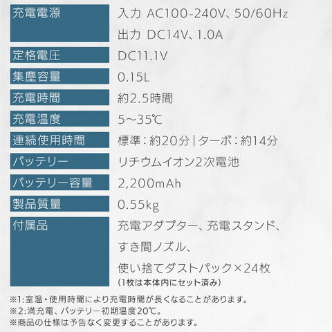 ※室温・使用時間などにより、充電時間が長くなることがあります。