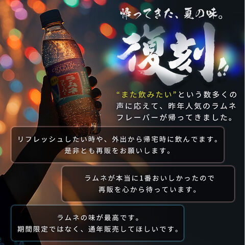 ボトルに閉じ込めた清らかで美しい天然水の輝きと炭酸のスパークで、心地よい刺激と爽快感が広がります。