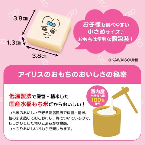 「低温製法」で精米したもち米を使用したおぱんちゅうさぎの生きりもちです。