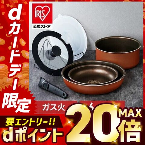 フライパン フライパンセット 6点セット ダイヤモンドコートパン 鍋 ふっ素 コーティング 20cm 26cm ガス火 ふた付き ガラス蓋 ガス アイリスオーヤマ 取っ手が取れる PDCG-T6S メタリックバーミリオン [キッチン]