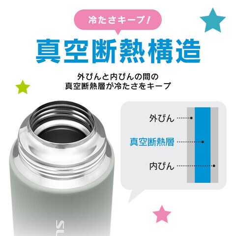 外びんと内びんの間の真空断熱層が冷たさをキープ。