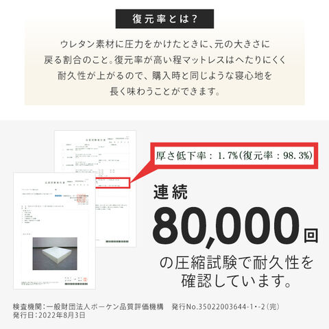 購入時の寝心地が長く続く、復元率98%。