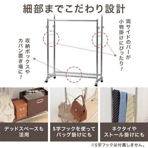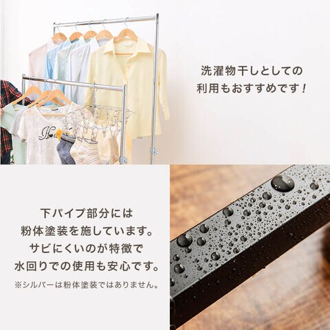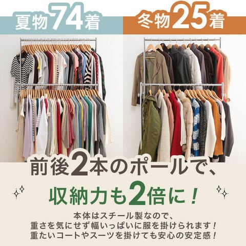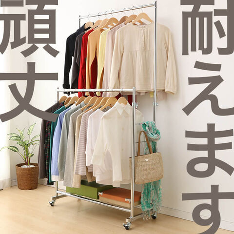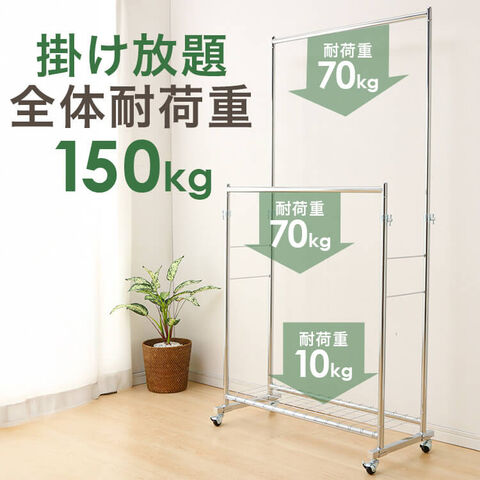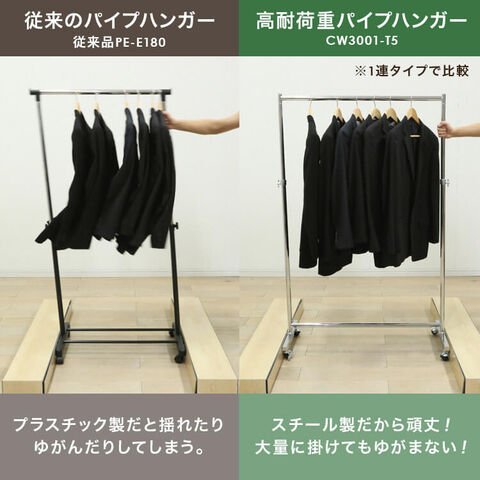 服をかけても、移動しても、グラつかない耐荷重150kgタイプのパイプハンガーです。
