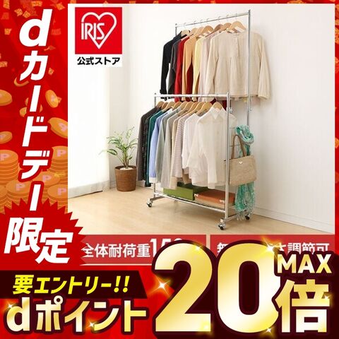 服をかけても、移動しても、グラつかない耐荷重150kgタイプのパイプハンガーです。