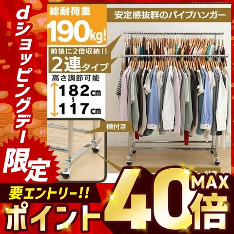 服をかけても、移動しても、グラつかない耐荷重190kgタイプのパイプハンガーです。