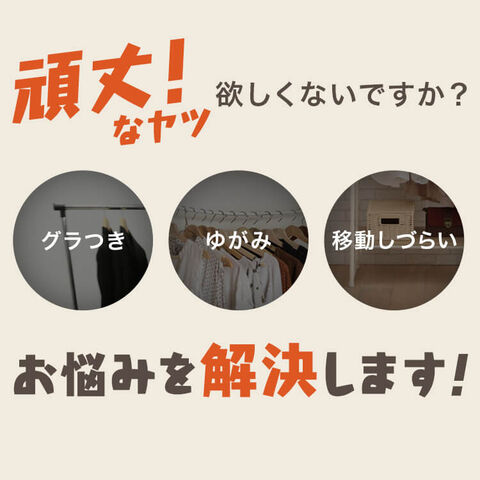服をかけても、移動しても、グラつかない耐荷重156kgタイプのパイプハンガーです。