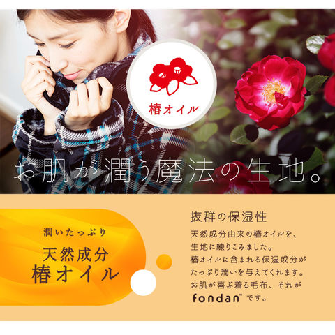更に乾燥する季節の肌に潤いを与えてくれる天然成分の『椿オイル』を生地に練り込みました。