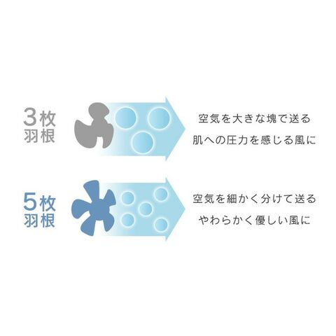 大きい羽根でしっかり風を送り、空気を細かく分けることで優しい風に。