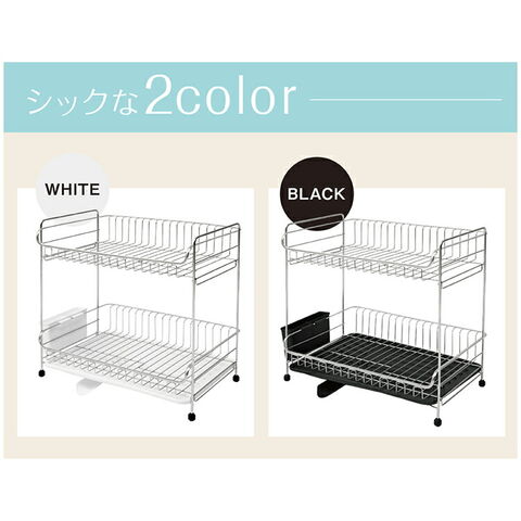 水切りラック シンク上 2段 ステンレス シンクサイド 水が流れる 大容量 カラトリーボックス付き 食器 水切りかご 水切りカゴ ステンレス水切り 水切り シンプル シンク 水回り 水周り 水まわり 滑り止め付き SSDD-2M ホワイト [キッチン]