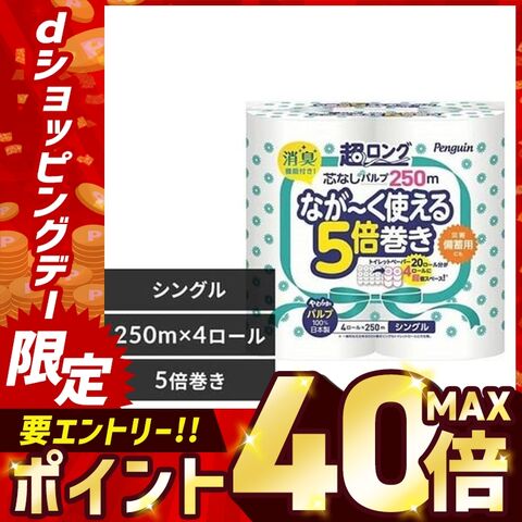 ペンギン芯なし超ロング(パルプ)丸富製紙 250m 4Rシングル 2605 白 【プラザセレクト】【プラザマーケット】