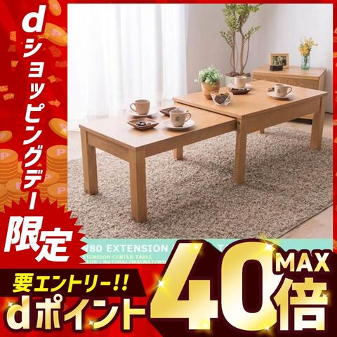 伸縮センターテーブル W80-140 RPE80TBLWN ウォールナット【プラザセレクト】