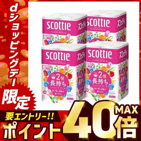 トイレットペーパー ダブル スコッティ 2倍 フラワーパック 2倍巻き 48ロール 2倍長持ち 50m 12ロール×4個セット 新生活 日本製紙クレシア まとめ買い 安い [日用品]