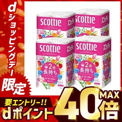 トイレットペーパー ダブル スコッティ 2倍 フラワーパック 2倍巻き 48ロール 2倍長持ち 50m 12ロール×4個セット 新生活 日本製紙クレシア まとめ買い 安い [日用品]