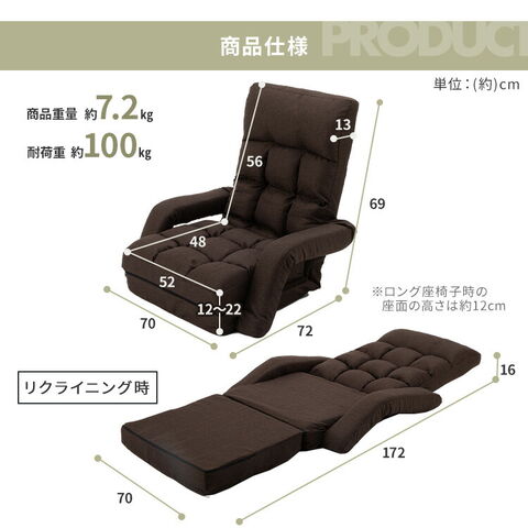 座椅子 おしゃれ コンパクト 肘掛け ハイバック 座いす フロアチェア リクライニングチェア 椅子 アームチェア チェア リクライニング コンパクト座椅子 CTSC-70 ブラウン [家具]