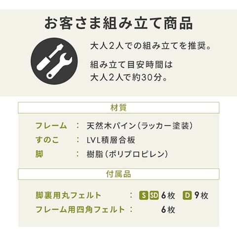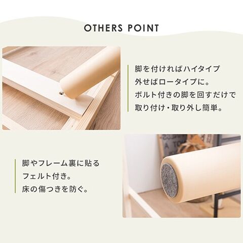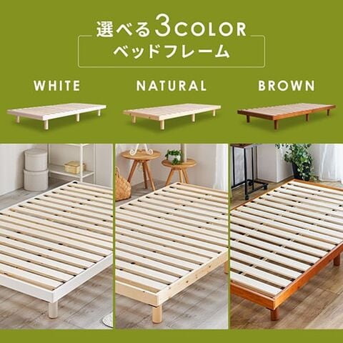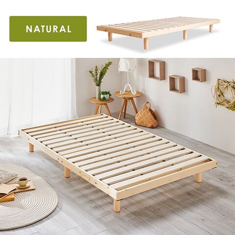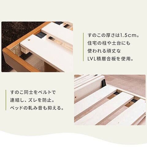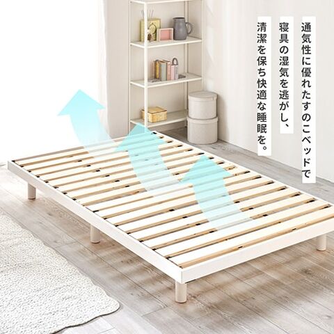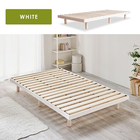 【マットレスセット】高さ2段階天然木スノコベッドホワイトセミダブル+ポケットコイルマットレス白