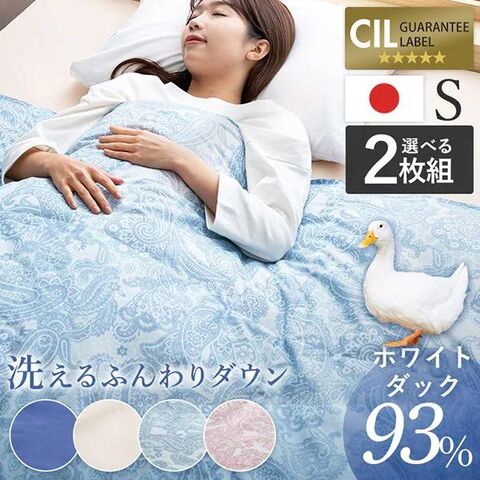 【2枚セット】ダウンケット WDD93%0.2kg シングル ペイズリーピンク/ブルー