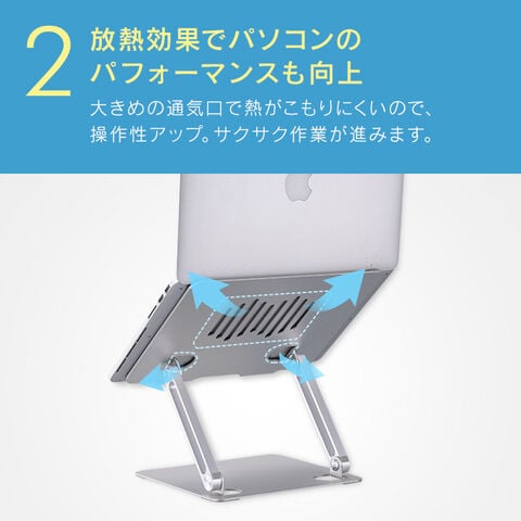 高さ・角度が無段階で調節可能なPCスタンドです。