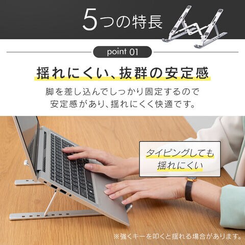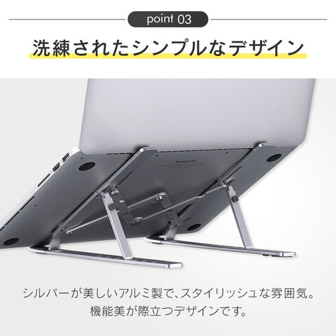 超軽量で持ち運びに最適、角度が7段階に調節可能なPCスタンドです。