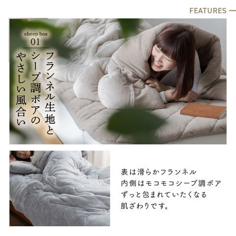 フランネルとシープ調ボアで中綿を挟んだ3層構造です。