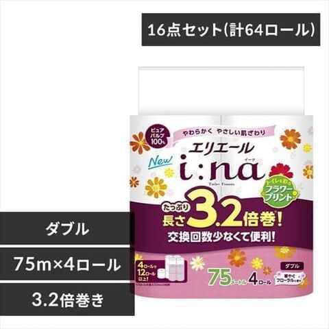 【64ロール】エリエール トイレットティシュー3.2倍巻 プリント 75mダブル 4ロール×16個セット