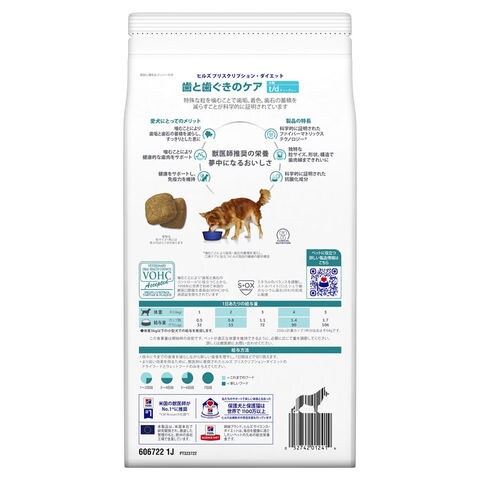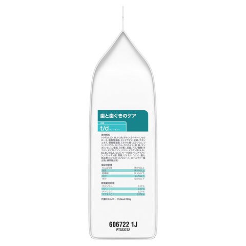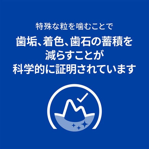 t/d 小粒の特殊な粒を噛むことで、歯垢、歯石の蓄積を低減することが科学的に証明されています。