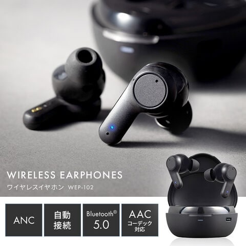 ワイヤレスイヤホン イヤホン Bluetooth ワイヤレス ブルートゥース ノイズキャンセリング ハンズフリー 通話 WEP-102 ブラック 【安心延長保証対象】 [家電]
