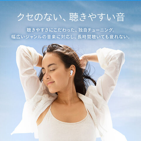 くせのない、聞きやすい音質のワイヤレスイヤホンです。ノイズキャンセリング機能付き。
