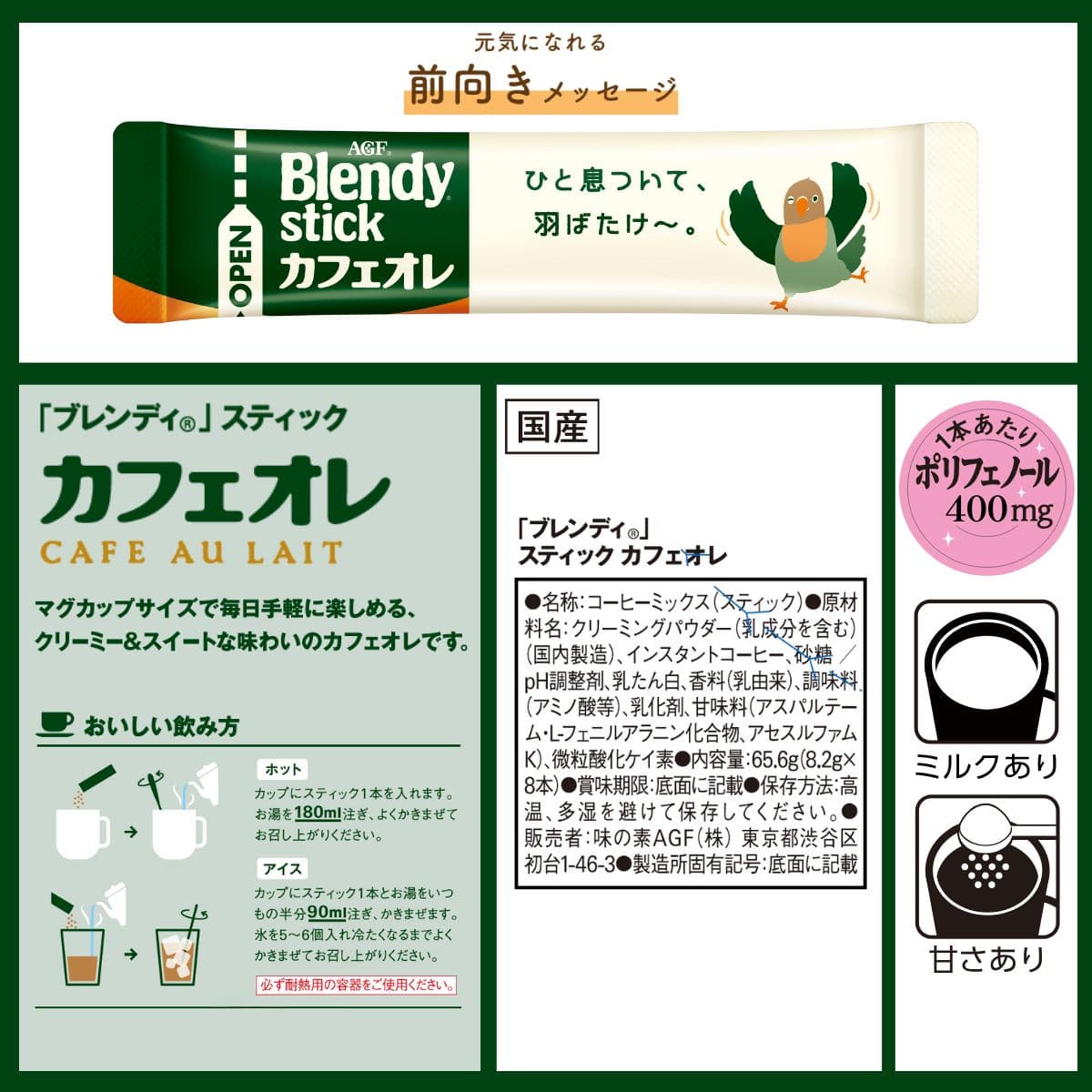 【ミルクカフェオレ】クリーミングパウダー(乳成分を含む)(国内製造)、砂糖、インスタントコーヒー、脱脂粉乳、デキストリン / pH調整剤、乳たん白、香料(乳由来)、乳化剤、調味料(アミノ酸等)、甘味料(アスパルテーム・L-フェニルアラニン化合物、アセスルファムK)、微粒酸化ケイ素